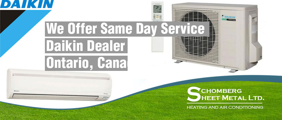 Daikin is advanced residential and commercial systems can deliver absolute comfort to practically any building of any shape, size, and age. That is why it is the ideal solution for home, schools, hotels, offices, hospital, stores, restaurants and much more. With Daikin, you can create a responsive environment that can constantly readjust itself to your changing needs. Contact Schomberg Sheet Metal for Daikin AC/Heating Service!